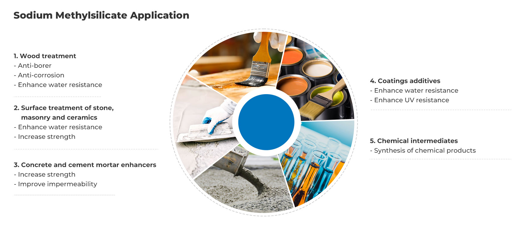 Met deze uitstekende eigenschappen heeft natriummethylsilicaat brede toepassingsmogelijkheden op veel gebieden. Op het gebied van de bouw kan het worden gebruikt voor het waterdicht maken van buitenmuren, daken, kelders en andere delen van gebouwen, waardoor lekkage van regenwater effectief wordt voorkomen en de bouwconstructie wordt beschermd. Als we een hoog woongebouw als voorbeeld nemen: na het gebruik van natriummethylsilicaat voor het waterdicht maken van de buitenmuren, was er na jaren van hevige regen geen sprake van lekkage aan de muur en daalde het klachtenpercentage van de bewoners aanzienlijk. Bij de renovatie van oude woonwijken werd natriummethylsilicaat gebruikt om het dak waterdicht te maken, waardoor de levensduur van het dak aanzienlijk werd verlengd.